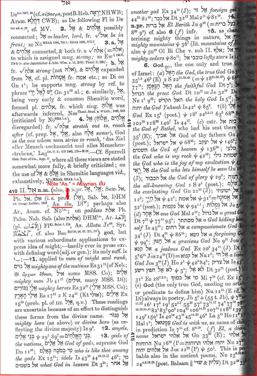 ILU (the entry is for "el" - god in Hebrew); "As." = Assyrian = Akkadian cuneiform (Assyria was part of Mesopotamia, and a huge amount of cuneiform material comes from there)