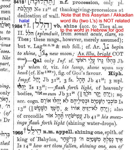illu (more properly, ellu) shows up here - for Hebrew halal, "to shine" (no relation to 'el, the wod for god):